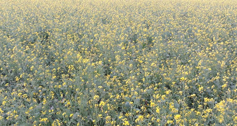 সরেজমিনে দেখা যায়, উপজেলার হামিদপুর, বৈলারপুর, বাঘেরবাড়ি, যাদবপুর, কালমেঘা, হাতিবান্ধা, কালিয়ান, বেতুয়া, বহেড়াতৈল এলাকাসহ বিভিন্ন এলাকায় সরিষার চাষ হয়েছে। ফসলি ক্ষেতে সবুজ পাতায় হলুদ ফুলে ফুলে মৌমাছিরা মধু সংগ্রহের জন্য গুন গুন করছে। অন্যদিকে মধুচাষি মধু সংগ্রহ করছেন। ওইসব জমিতে সবুজ সরিষা গাছগুলো হলুদ ফুলে ফুলে ভরে ওঠায় কৃষকের মুখে হাসি ফুটে উঠেছে।
